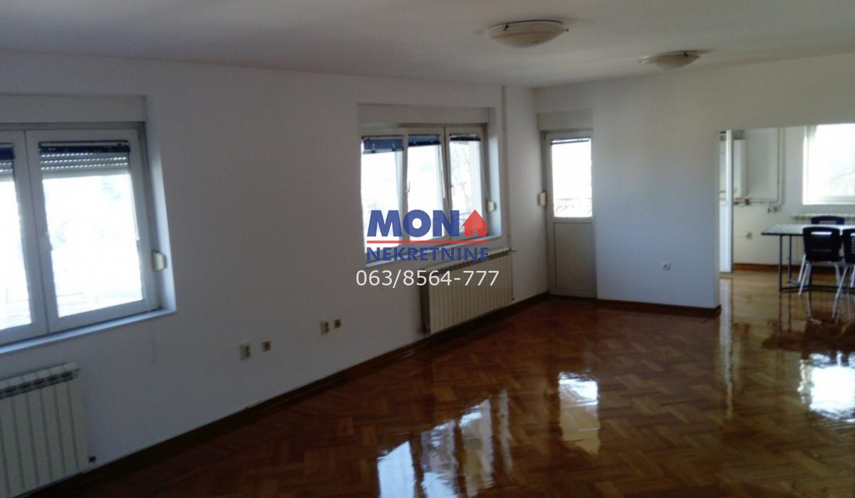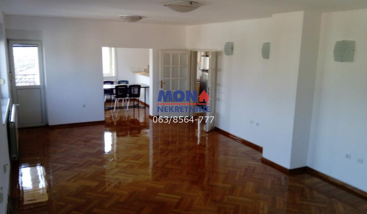 Od prostorija ima: dnevnu sobu od 40kvm, 3 spavaće sobe, kuhinju s trpezarijom, 2 kupatila, 2 terase, garderober. Stan poseduje i podrum.